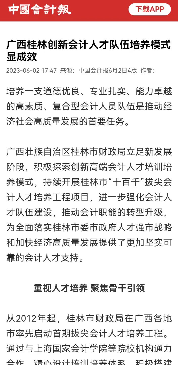 《中国会计报》:广西桂林创新会计人才队伍培养模式显成效【2023年6月2日】