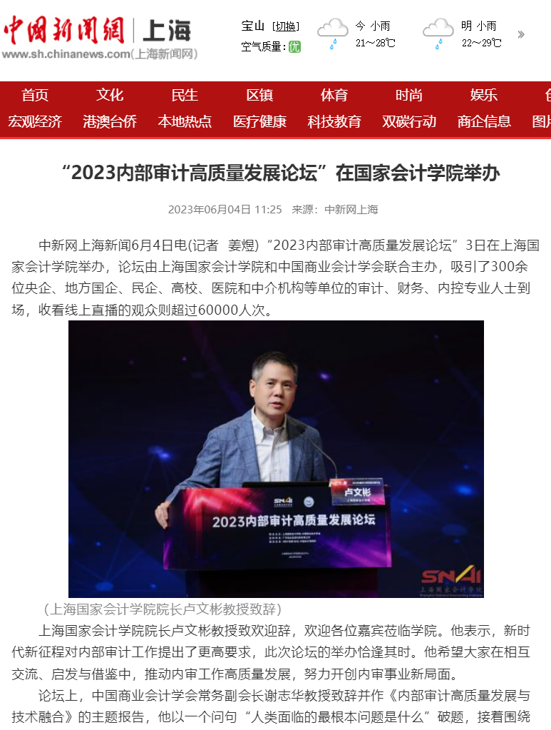 中国新闻网:“2023内部审计高质量发展论坛”在国家会计学院举办【2023年6月4日】