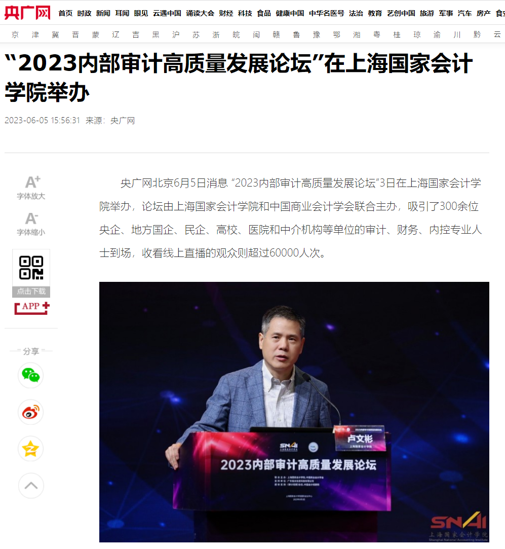央广网:“2023内部审计高质量发展论坛”在上海国家会计学院举办【2023年6月5日】