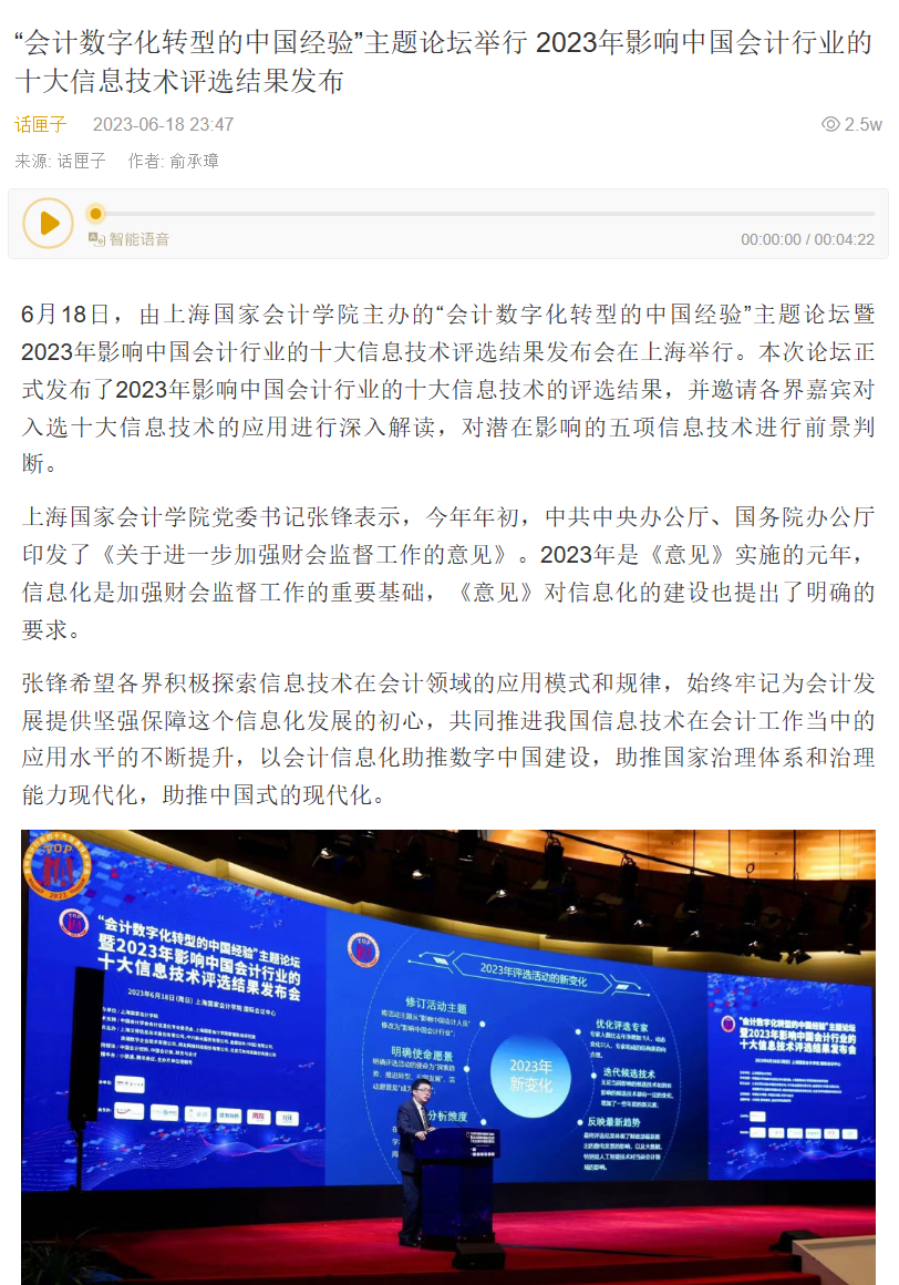 SMG广播新闻中心 话匣子:“会计数字化转型的中国经验”主题论坛举行 2023年影响中国会计行业的十大信息技术评选结果发布【2023年6月18日】