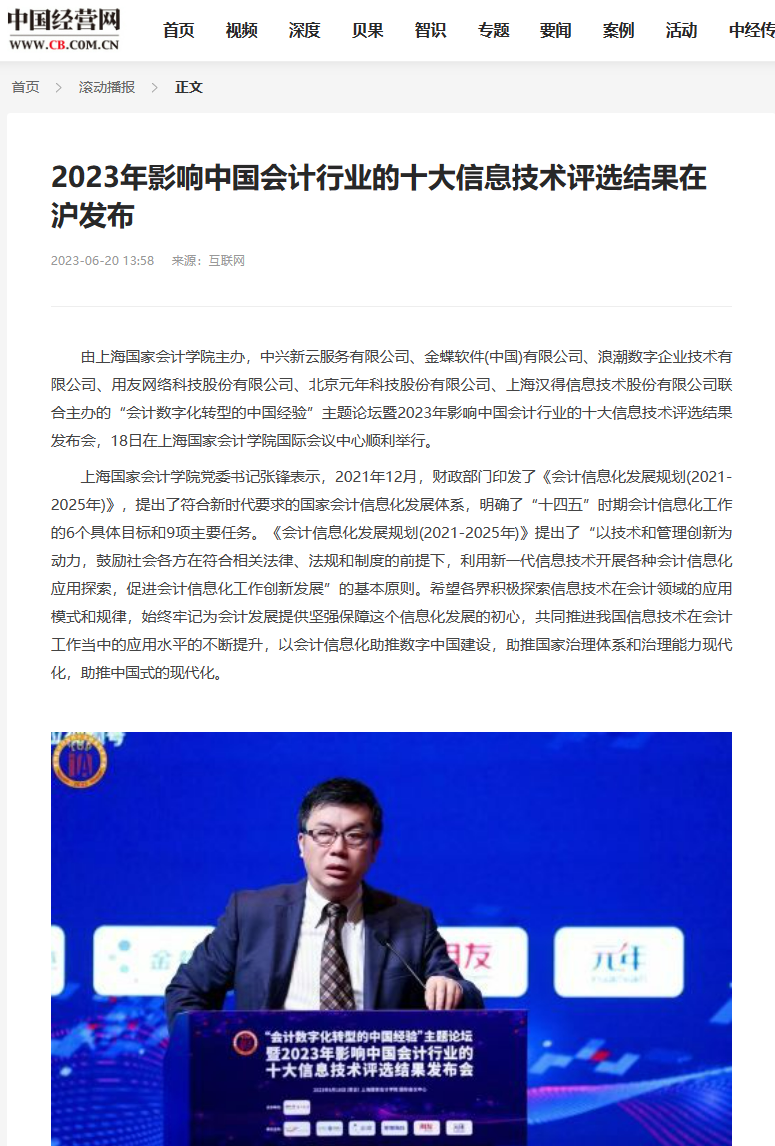 《中国经营报》:2023年影响中国会计行业的十大信息技术评选结果在沪发布【2023年6月20日】