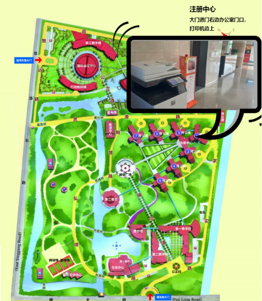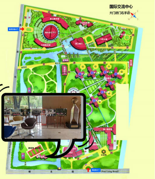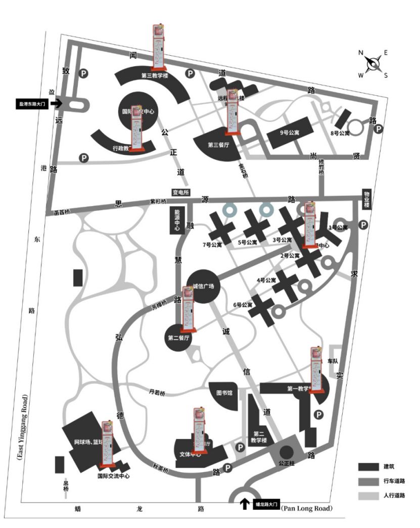附图为学院配备的8个体外除颤仪的地图,请大家能关注一下它们所在位置,一旦需要可以快速取得