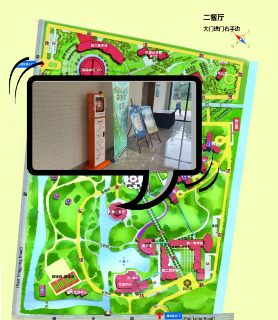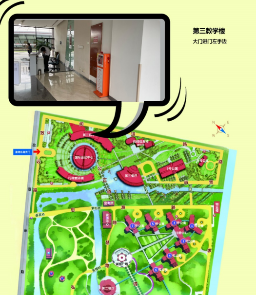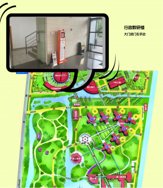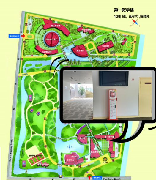 1. 第一节教学楼(北侧门进,正对大门靠墙处)