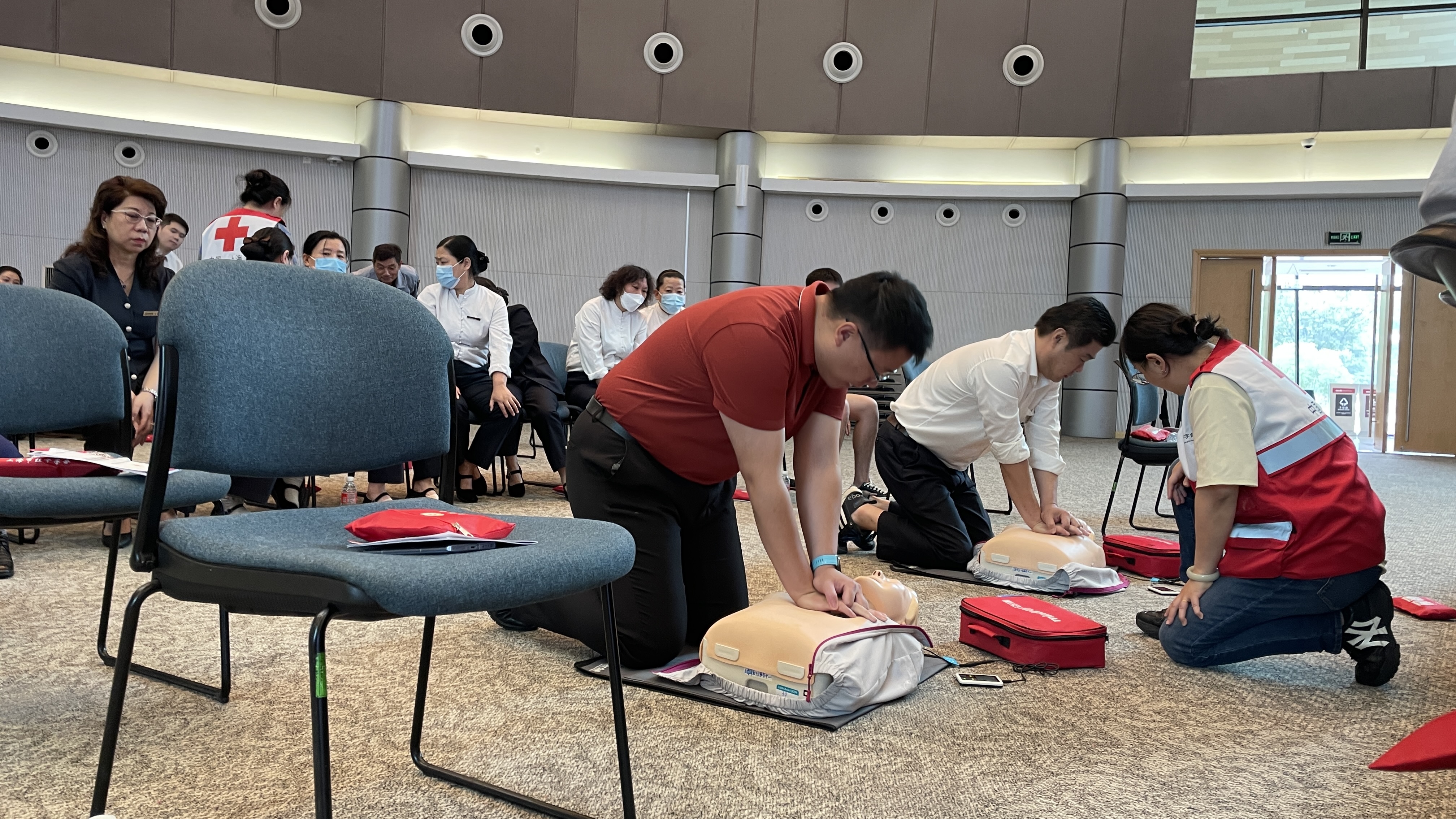 培训过程中,应急救护培训师通过视频演示和现场示范等方式,讲授了急救基本概念、心肺复苏(CPR)、自动体外除颤仪(AED)和气道异物梗阻等急救知识,并进行了现场操作指导。培训最后,参训人员参加了书面考核和现场操作考核,考核合格者还获得了“红十字会急救普及员培训”证书。
