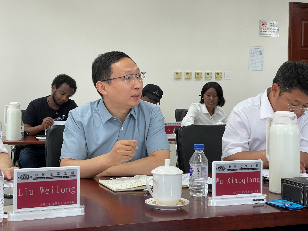 参观结束后,留学生们来到会议室,与中国化学的专家们进行座谈交流。在座谈开始前,中国化学工程集团财务资金部副部长孙立刚对留学生一行的到访表示热烈欢迎,并简要介绍了集团的基本情况。他提到,中国化学工程集团有限公司是我国化工领域资质最齐全、功能最完备、业务链最完整、知识技术密集的国际工程公司,是石油和化学工业工程领域的国家队,在油气服务领域稳居全球第一。