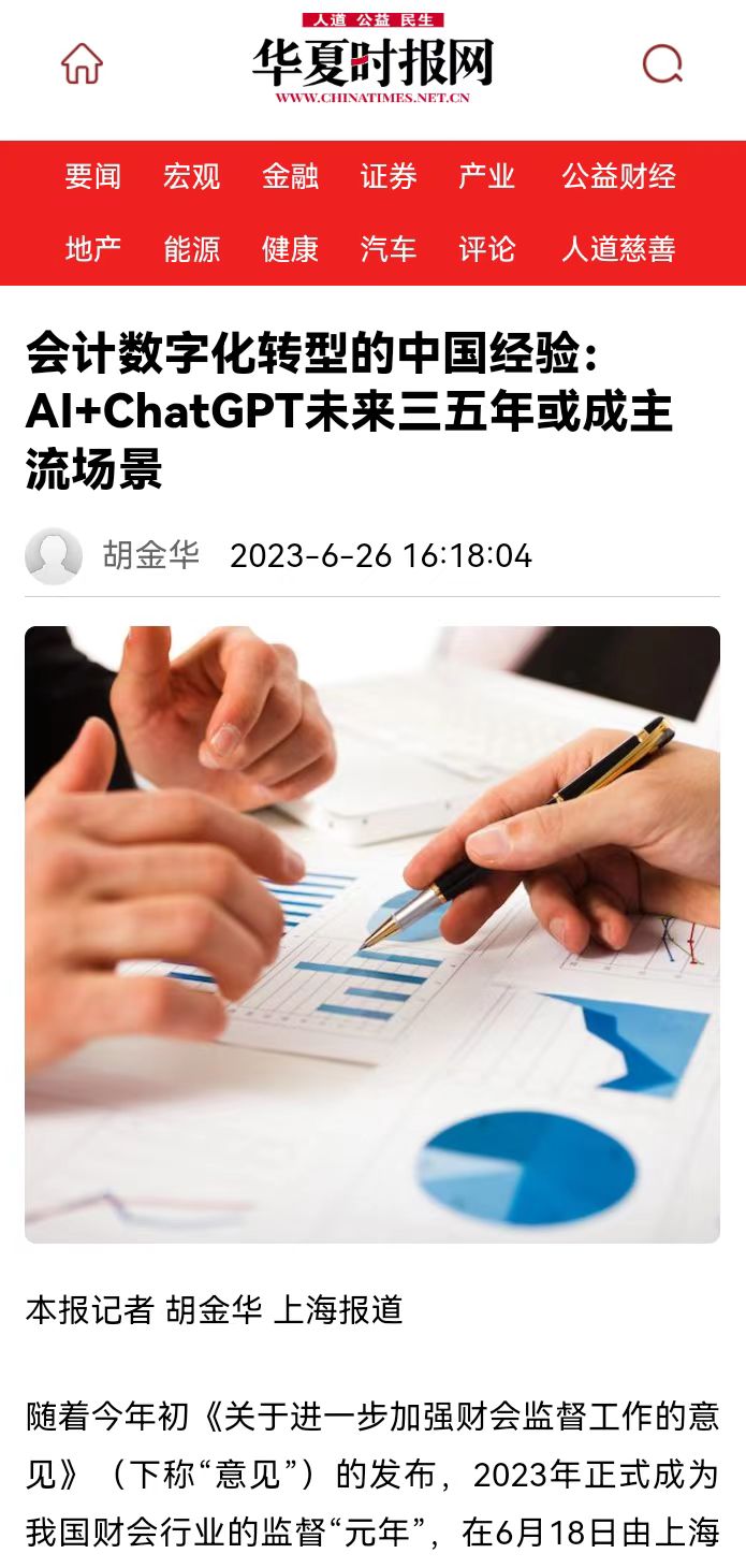 《华夏时报》:会计数字化转型的中国经验:AI+ChatGPT未来三五年或成主流场景【2023年6月26日】