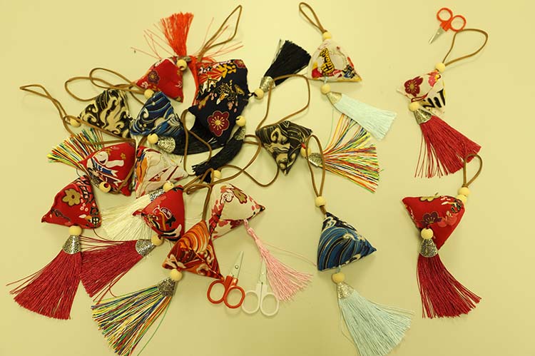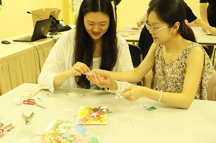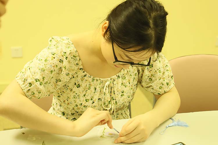 本次手作活动制作“干花书签”和“粽子香囊”,胡梦楠同学详细地介绍了手作材料的加工步骤。同学们兴致盎然,挑选喜欢的原材料,研究如何制作出属于自己的书签和香囊。在制作过程中,大家耐心地交流遇到的困难,互相帮助,分享亲手完成手作的喜悦。伴随着悦耳舒心的音乐和沁人心脾的艾草清香,同学们完成了一个个色彩斑斓、样式各异的香囊和书签。在两个多小时的手作活动中,大家感受到了慢生活的乐趣,享受到了亲手完成手工品带来的满足感和成就感。