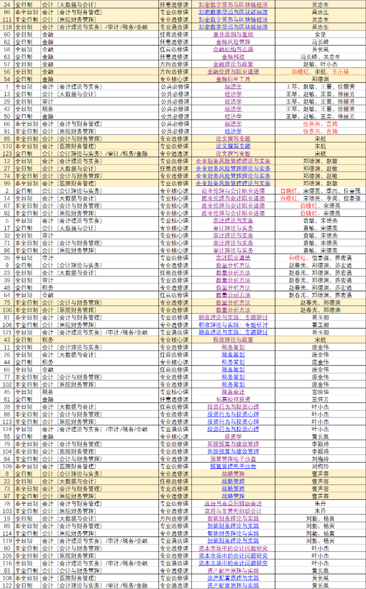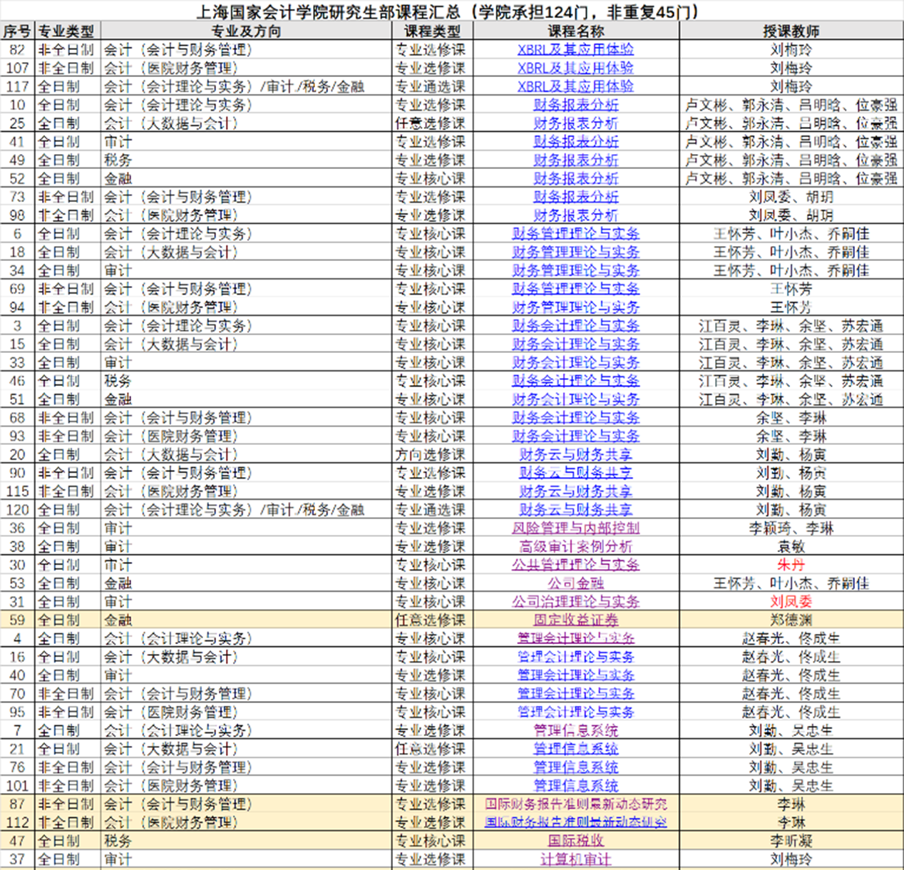 附表3:上海国家会计学院研究生部课程汇总(共124门)