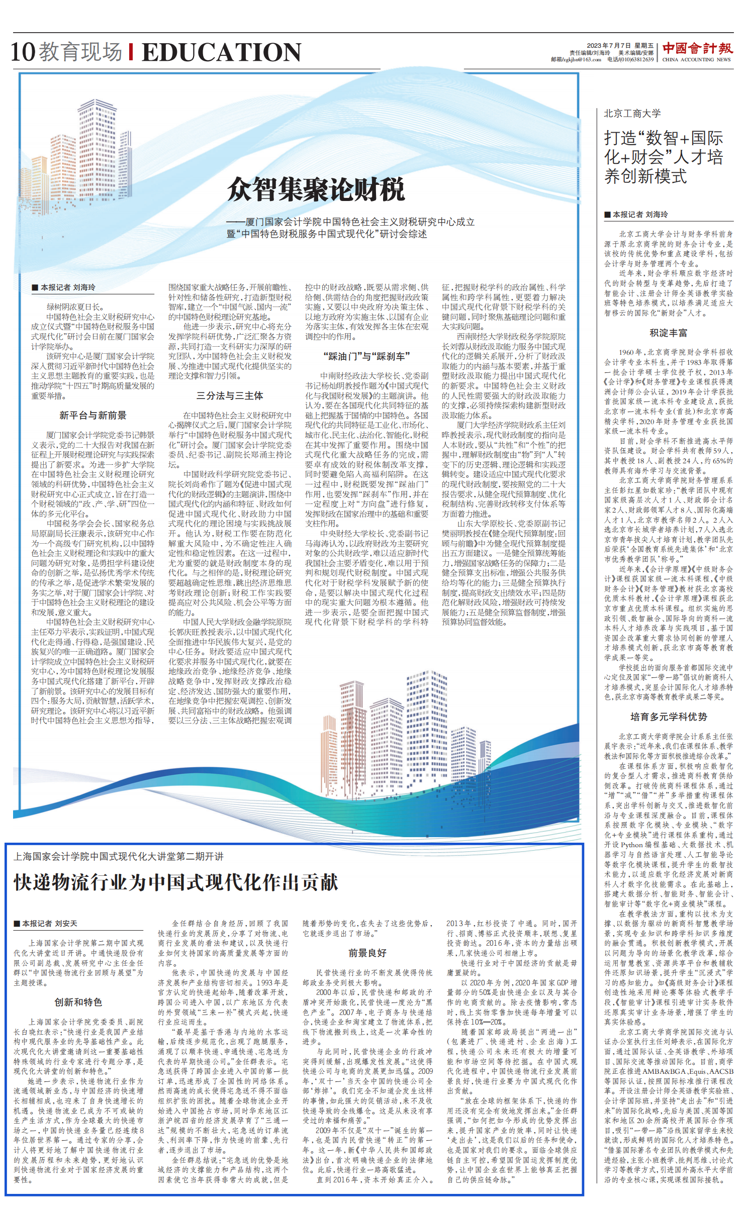 《中国会计报》:上海国家会计学院中国式现代化大讲堂第二期开讲快递物流行业为中国式现代化作出贡献【2023年7月7日】