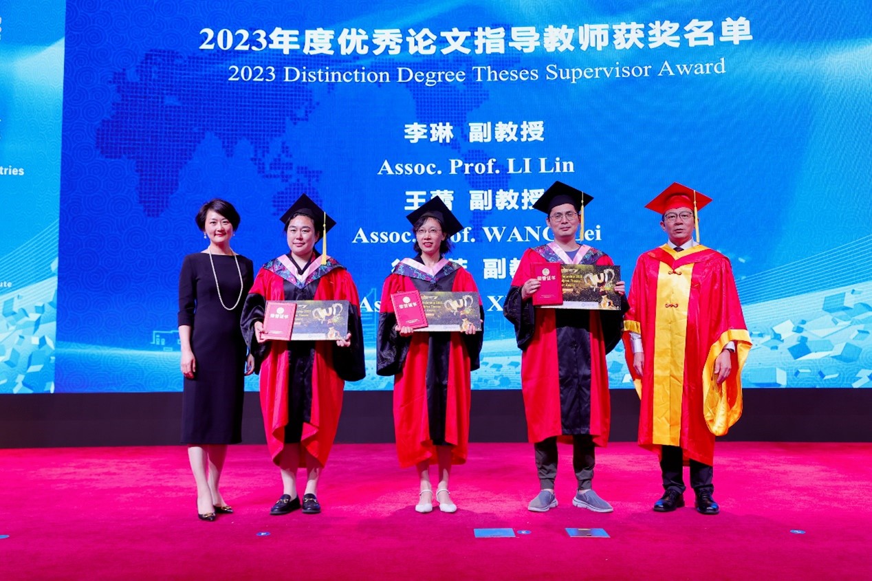 典礼上,还特别举行了由特许公认会计师公会(ACCA)和利安达国际投资(北京)有限公司资助的留学生专项奖学金荣誉表彰环节。张锋书记和ACCA华中区总监朱晓云女士为“优秀硕士学位论文”和“优秀论文指导教师”的获得者颁奖。卢文彬院长和利安达会计师事务所高级合伙人辛峰女士为“优秀毕业生”获得者颁奖。