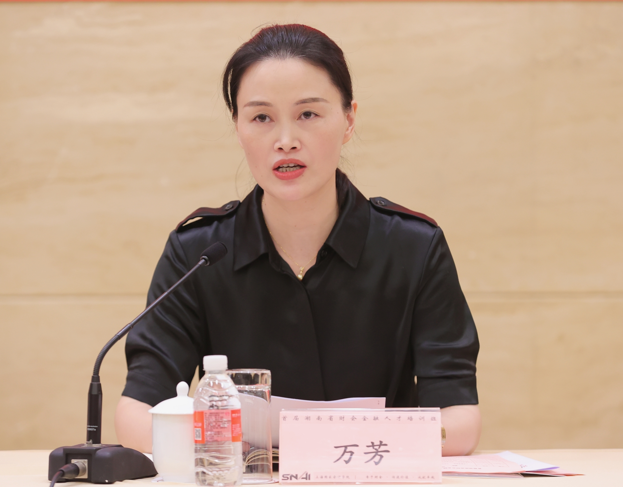 万芳副主任在讲话中向各位专家学员致以诚挚的问候,并用三句话与全体学员共勉。一是心有多大,舞台就有多大。希望各位学员志存高远、胸怀天下,以“敢想敢干”的勇气和“舍我其谁”的担当,把握时代机遇,扛牢使命责任,积极把个人的理想抱负和事业追求融入现代化新湖南建设的伟大征程之中。二是树根扎得越深,叶才能更繁茂。希望学员像沙漠里面的胡杨树那样,在集训过程中能够沉下去学、扎进去学、心无旁骛地学,争取学出思想、学到精髓、学出成效。三是为者常成,行者常至。希望大家能够珍惜荣誉,始终铭记和践行“三坚三守”的职业道德要求,争当财会金融服务实体经济高质量发展的模范。