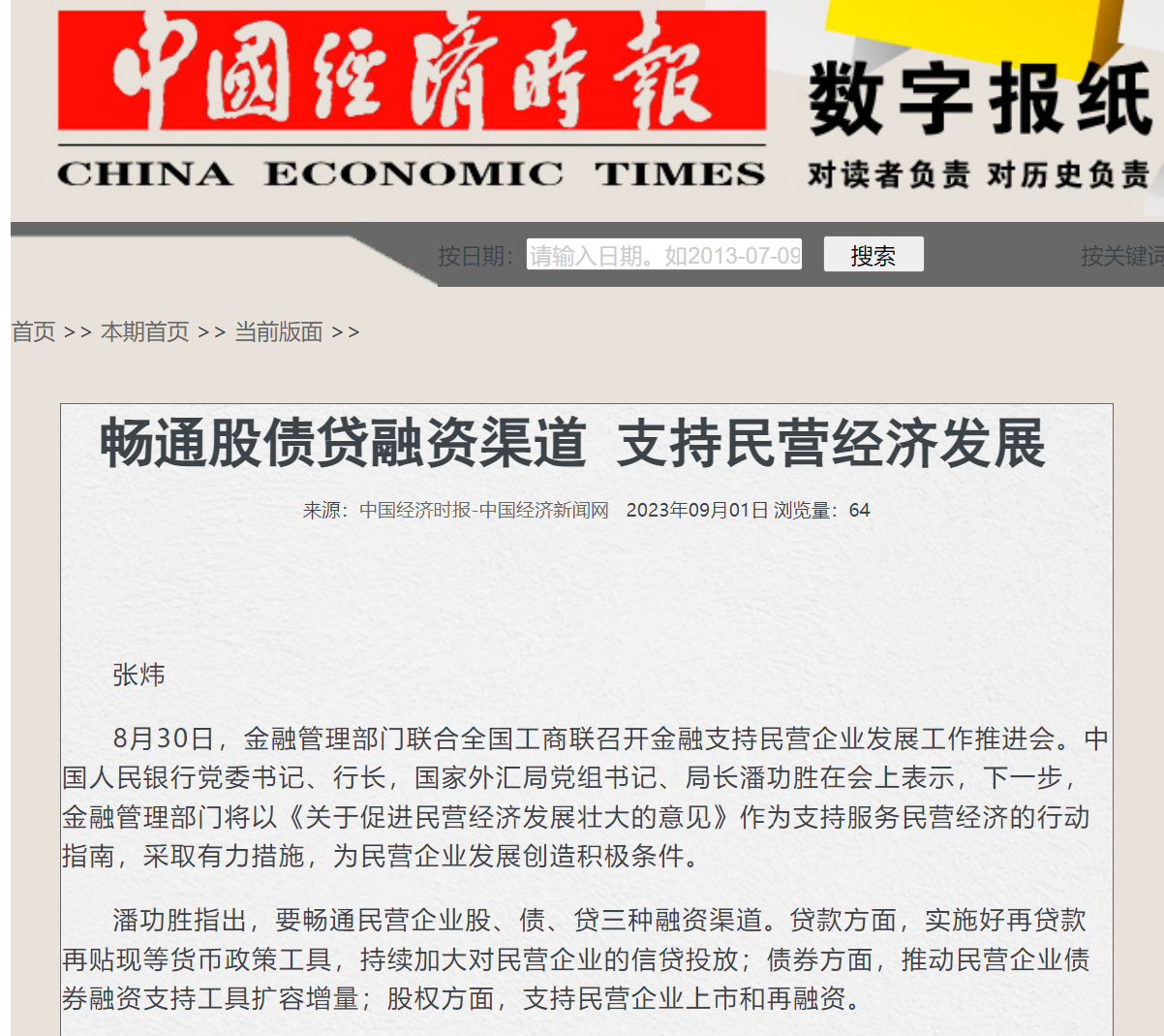 行业观点:叶小杰|《中国经济时报》:畅通股债贷融资渠道 支持民营经济发展【2023年9月1日】