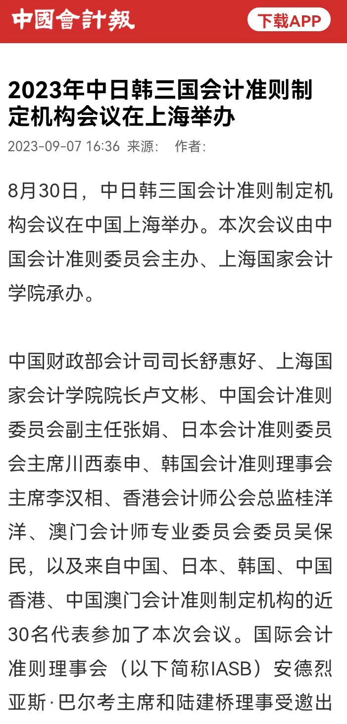 《中国会计报》:2023年中日韩三国会计准则制定机构会议在上海举办【2023年9月7日】