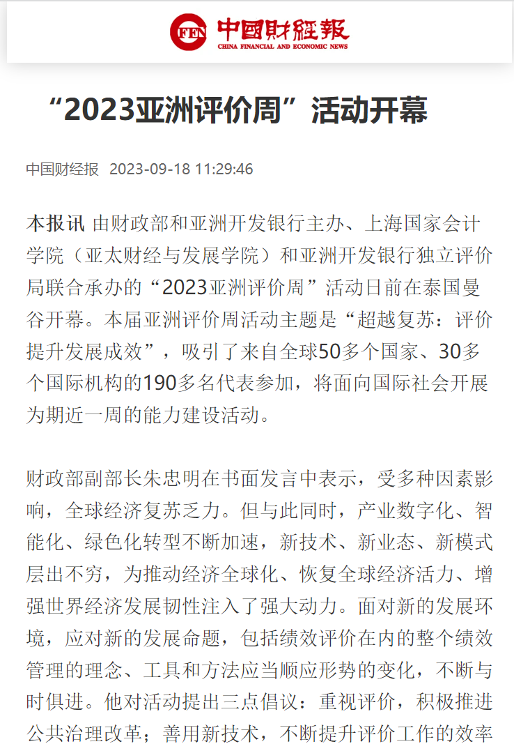 《中国财经报》:“2023亚洲评价周”活动开幕【2023年9月18日】
