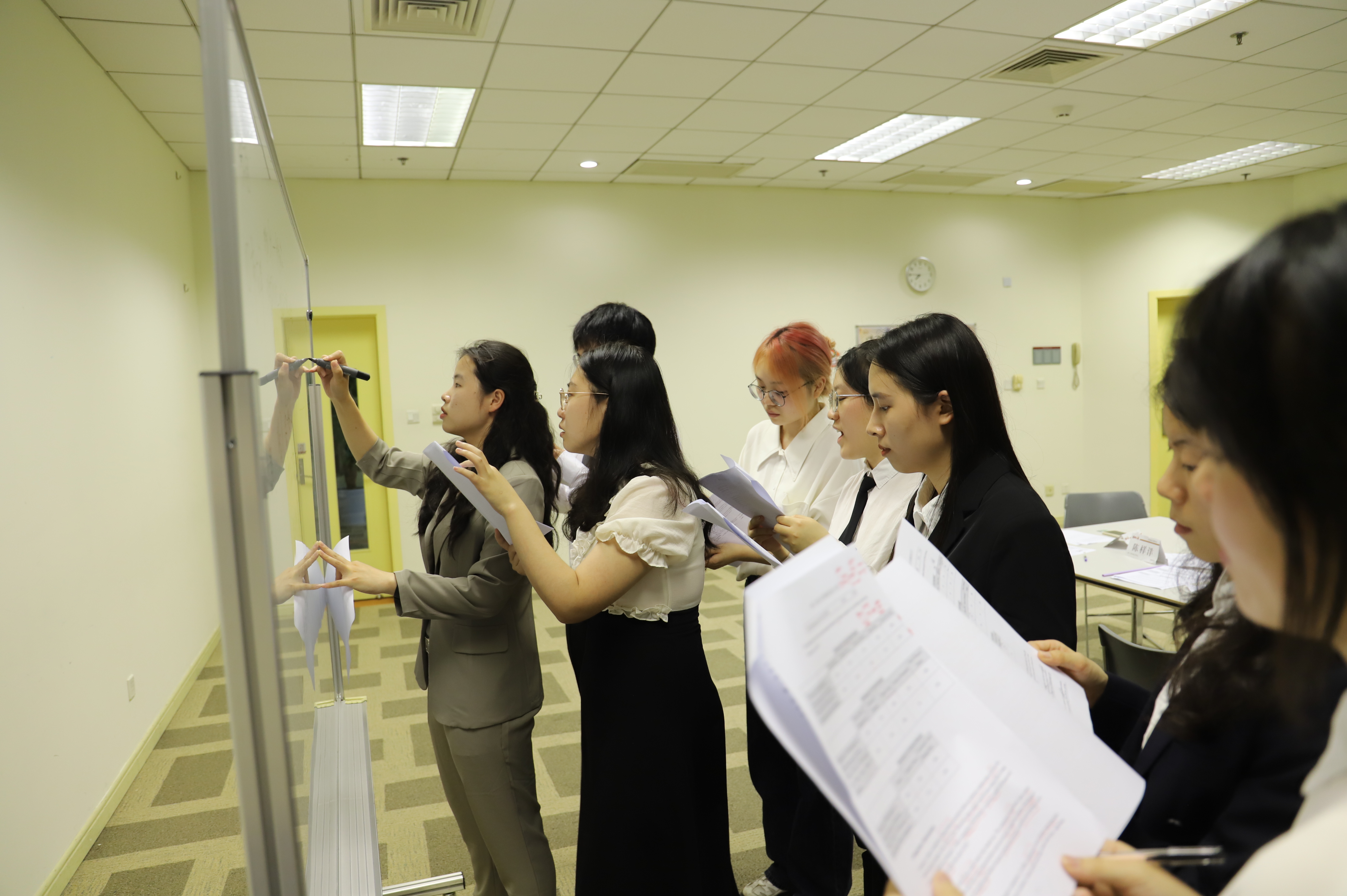 群英荟萃,各显神通。在无领导小组模拟面试环节,选手们在案例阅读和案例讨论后,得出了最佳解决方案并进行了精彩的案例成果展示。评委点评,精炼到位。评委们对选手们精彩表现给予高度评价,对不足提出了建议,并分享了面试经验、给出了切实中肯的求职建议。个人面试,尽显风采。在单人面试环节,评委们提出学历背景、实习经历及职业规划等问题,让选手们充分感受现实模拟环境,提升其面试抗压及应变能力。