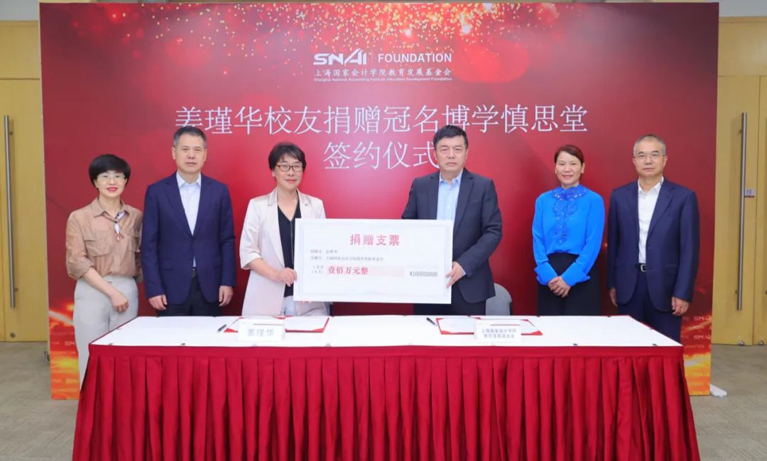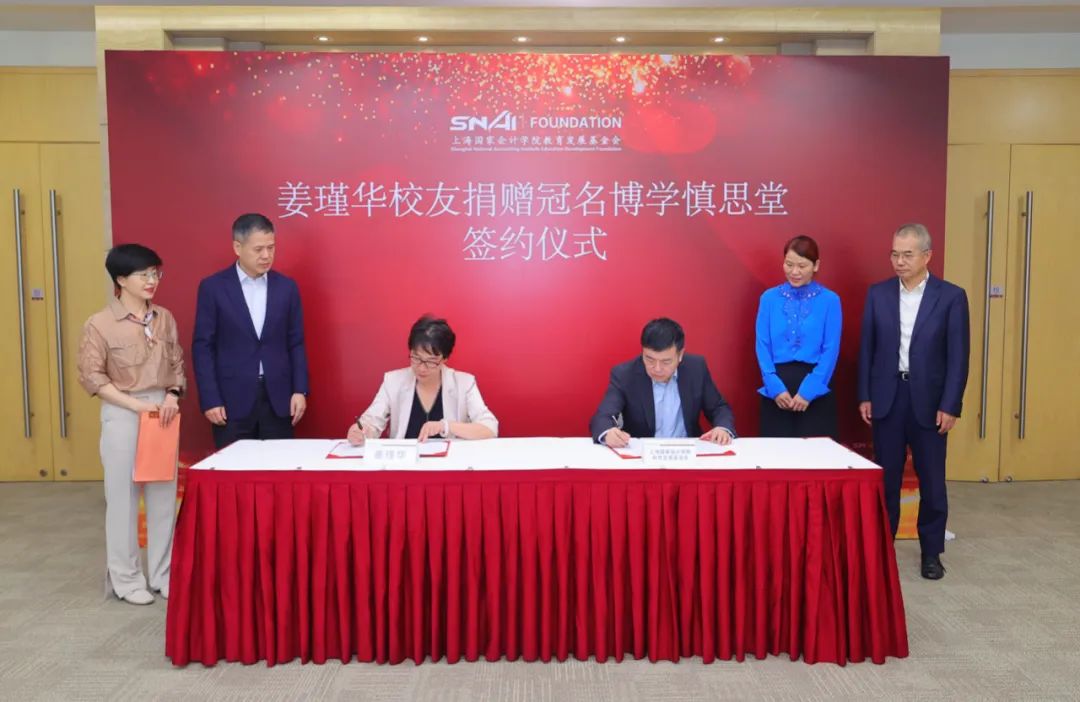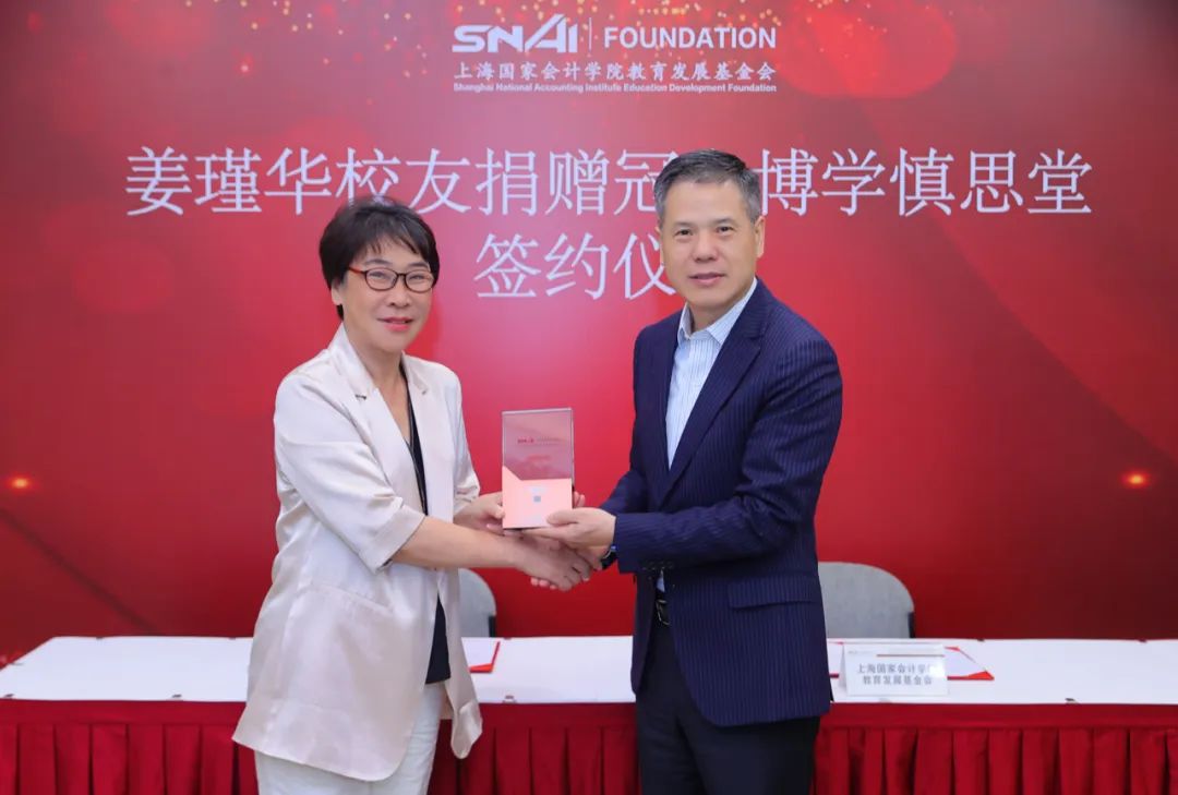 2023年9月21日,上海国家会计学院教育发展基金会理事长刘勤与姜瑾华校友共同签署捐赠协议。上海国家会计学院院长、党委副书记卢文彬教授、上海国家会计学院教育发展基金会秘书长傅秋莲、理事杨玉成、监事长黄彩英等陪同见证。