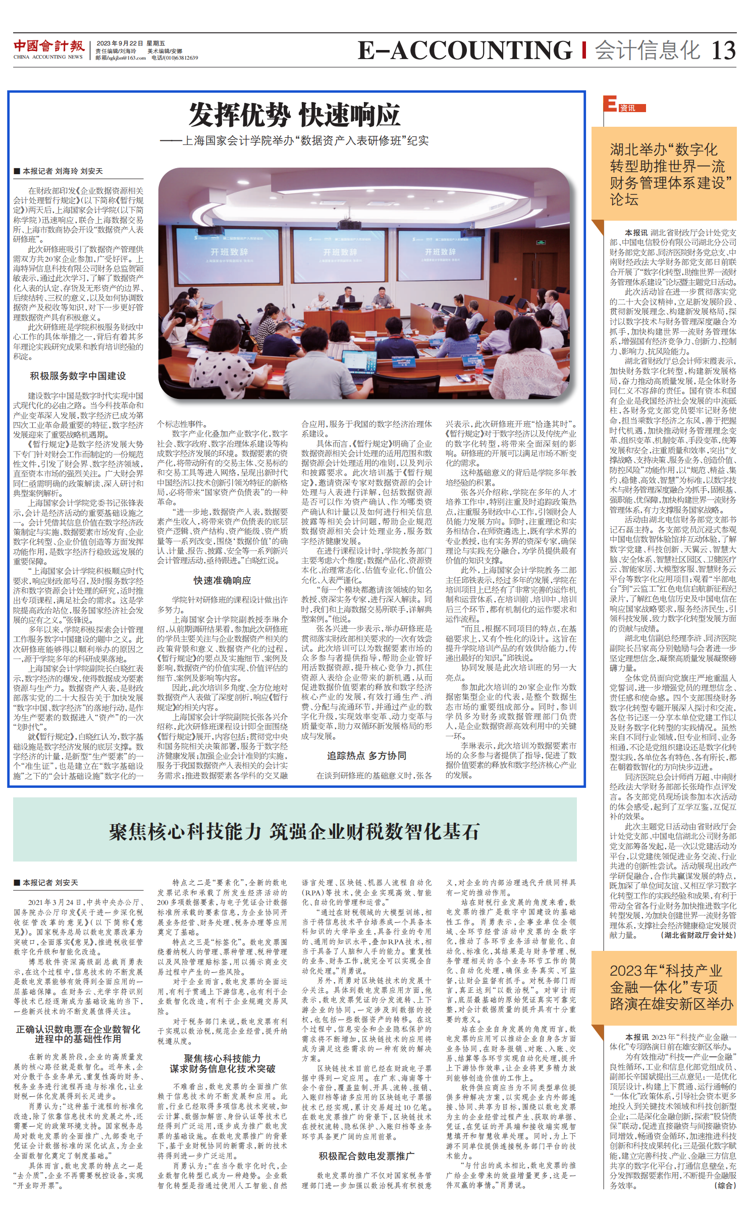 《中国会计报》:发挥优势 快速响应 ——上海国家会计学院举办“数据资产入表研修班”纪实【2023年9月22日】