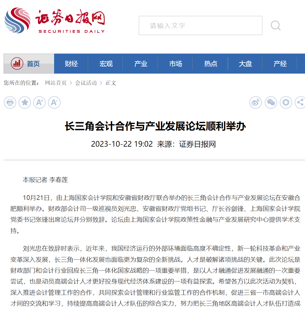 证券日报网:长三角会计合作与产业发展论坛顺利举办【2023年10月22日】