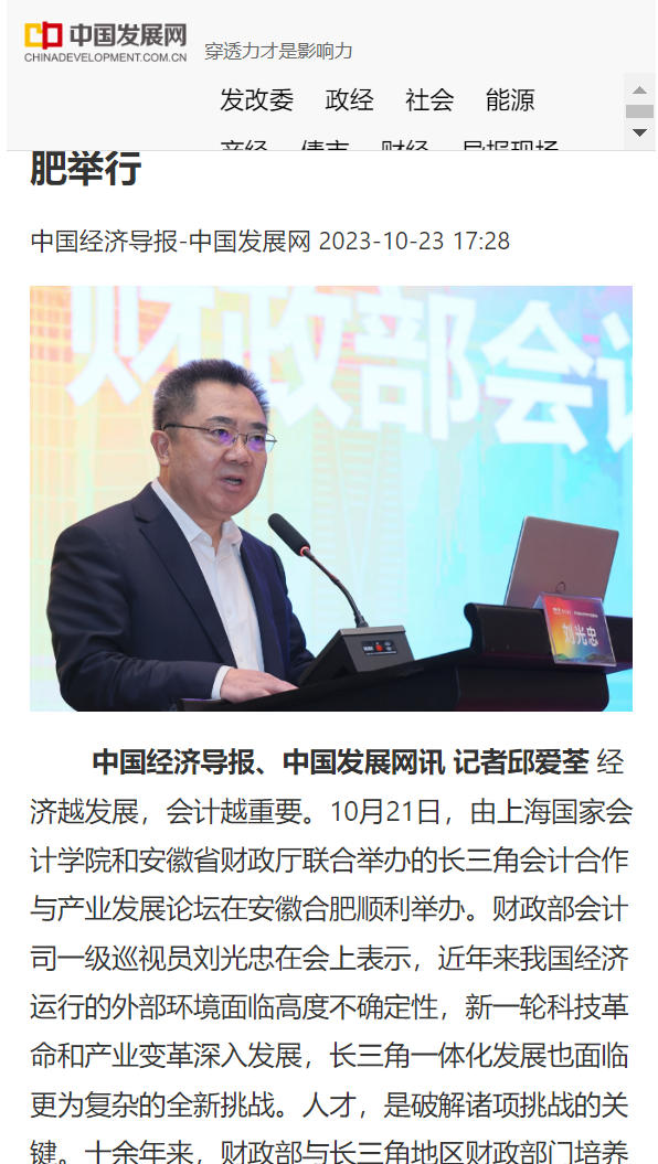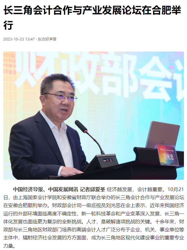 《中国经济导报》中国发展网:长三角会计合作与产业发展论坛在合肥举行【2023年10月23日】