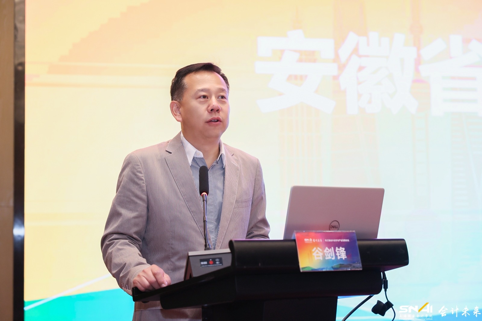 谷剑锋致辞时指出,长三角一体化战略定位的实现,需要沪苏浙皖四地积极参与,共谋融合、共同成长、共享成果,为长三角一体化发展贡献力量。安徽省财政厅积极贯彻落实财政部和省委、省政府关于会计管理工作的要求,在提升会计信息质量、加速高端会计人才培养、强化会计管理信息化建设等方面取得了积极的成效。本次长三角会计合作与产业发展论坛是财政财务层面落实长三角一体化发展战略的具体举措,体现了长三角财政会计人才服务国家战略的大局观、责任心和使命感。本次论坛进一步拓宽了长三角区域和发展合作的空间,对推动新时代长三角会计高地建设,实现互利共赢、共同繁荣,必将起到积极的作用。
