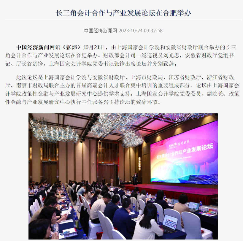 《中国经济时报》中国经济新闻网:长三角会计合作与产业发展论坛在合肥举办【2023年10月24日】