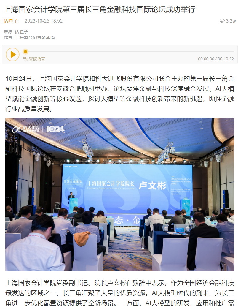 话匣子:上海国家会计学院第三届长三角金融科技国际论坛成功举行【2023年10月25日】