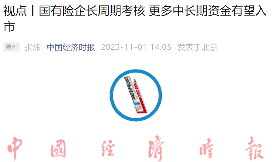 行业观点:方国斌|《中国经济时报》:视点丨国有险企长周期考核 更多中长期资金有望入市【2023年11月1日】