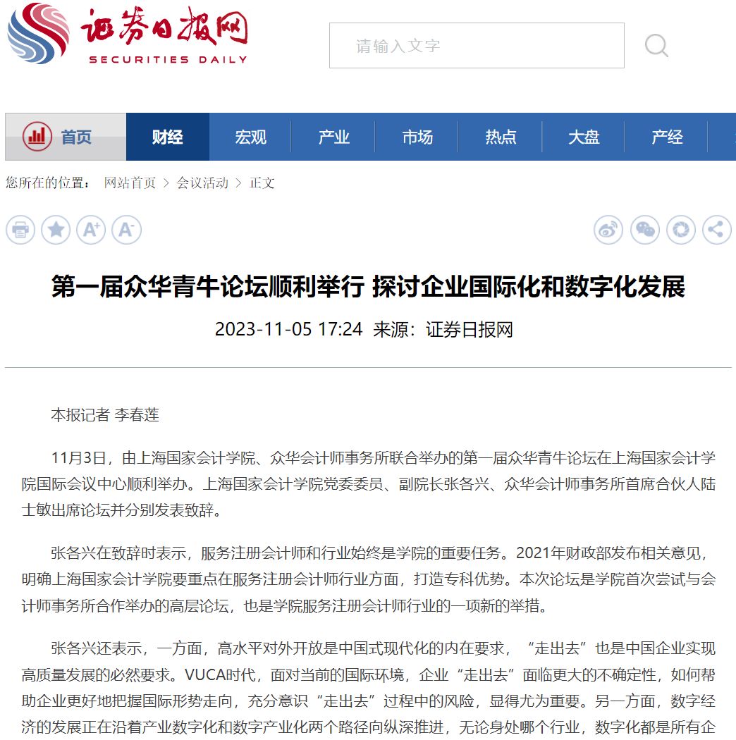 《证券日报》:第一届众华青牛论坛顺利举行 探讨企业国际化和数字化发展【2023年11月5日】