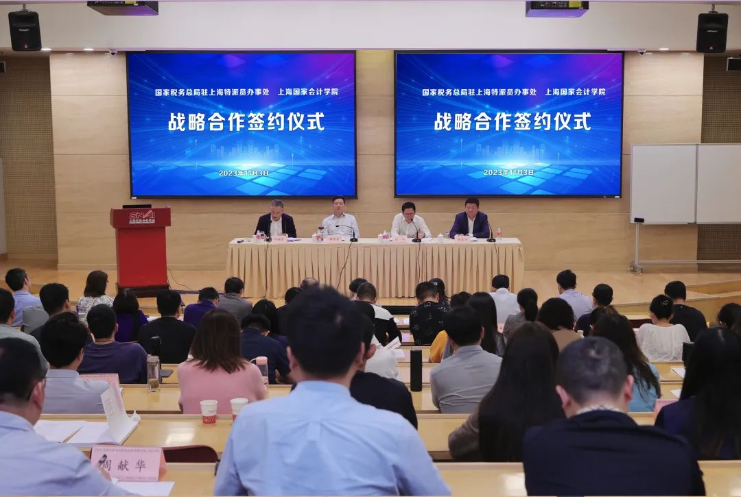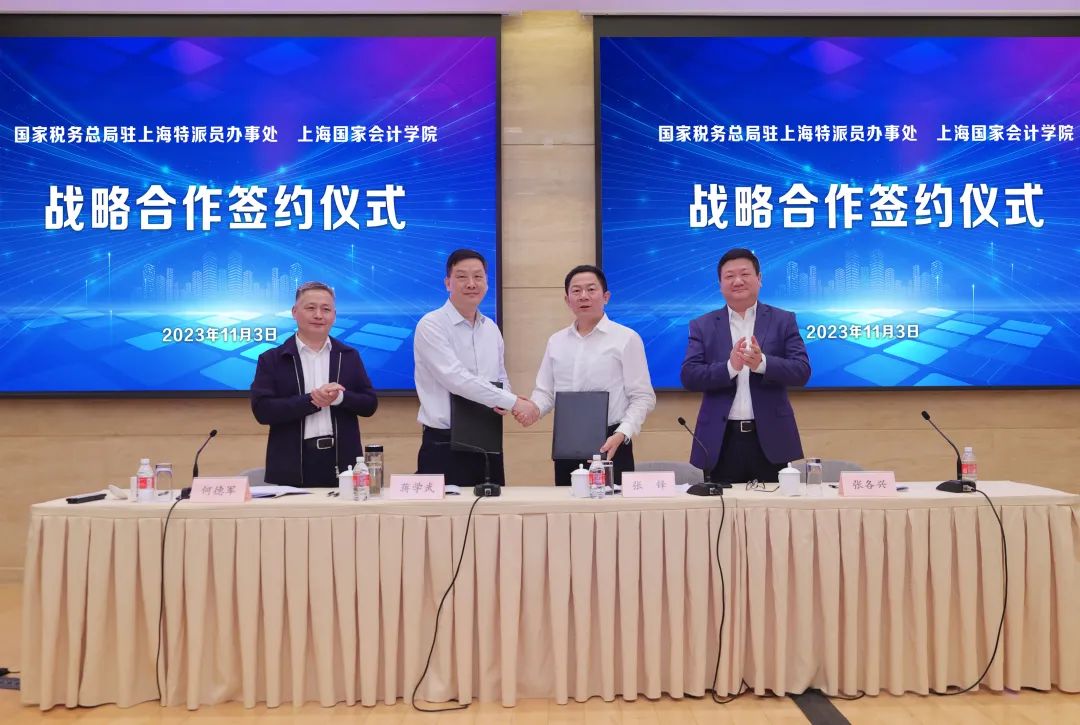税务总局驻上海特派办党委书记、特派员蒋学武与上海国家会计学院党委书记张锋共同签署了战略合作框架协议。协议约定,双方将围绕着党建共建、财税智库共享、财税问题研究、高端人才培养,开展全方位、多层次、持续性务实合作,探索服务区域经济高质量发展的合作样板。