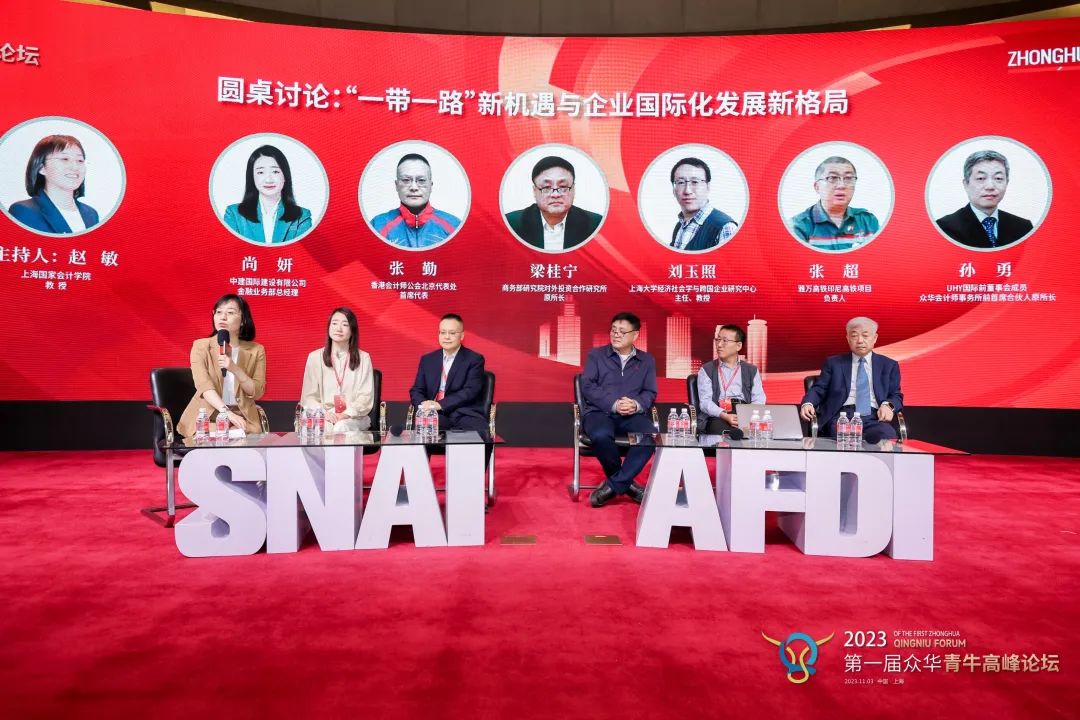 商务部研究院对外投资合作研究所原所长梁桂宁、上海大学经济社会学与跨国企业研究中心主任、教授刘玉照、香港会计师公会北京代表处首席代表张勤、中建国际建设有限公司金融业务部总经理尚妍、雅万高铁印尼高铁项目负责人张超、UHY国际前董事会成员、众华会计师事务所前首席合伙人孙勇围绕“一带一路”新机遇与企业国际化发展新格局的主题开展了圆桌讨论。