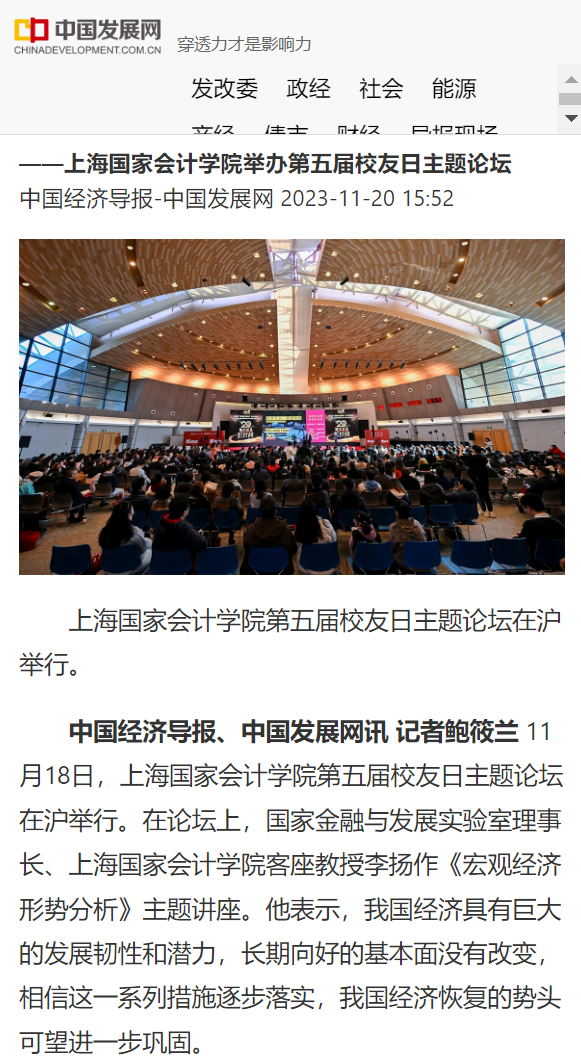 《中国经济导报》中国发展网:中国经济具有巨大的发展韧性和潜力——上海国家会计学院举办第五届校友日主题论坛【2023年11月20日】
