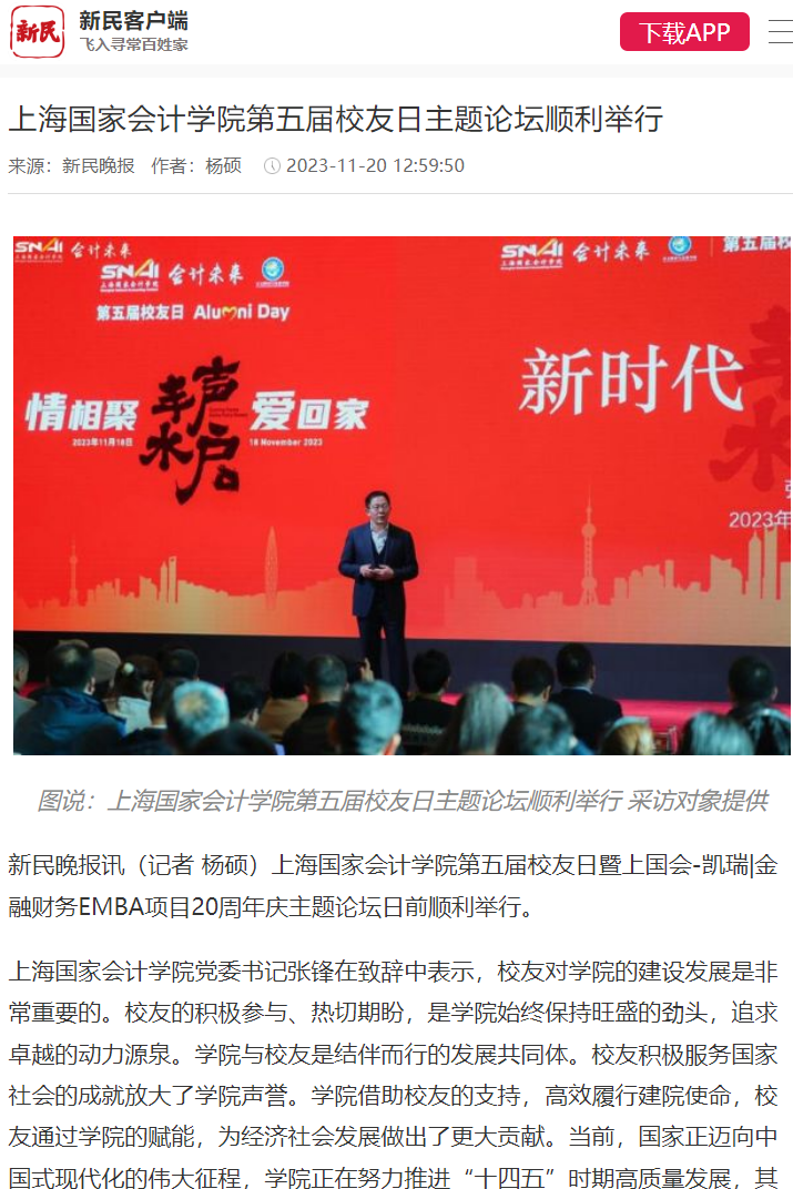 《新民晚报》:上海国家会计学院第五届校友日主题论坛顺利举行【2023年11月20日】