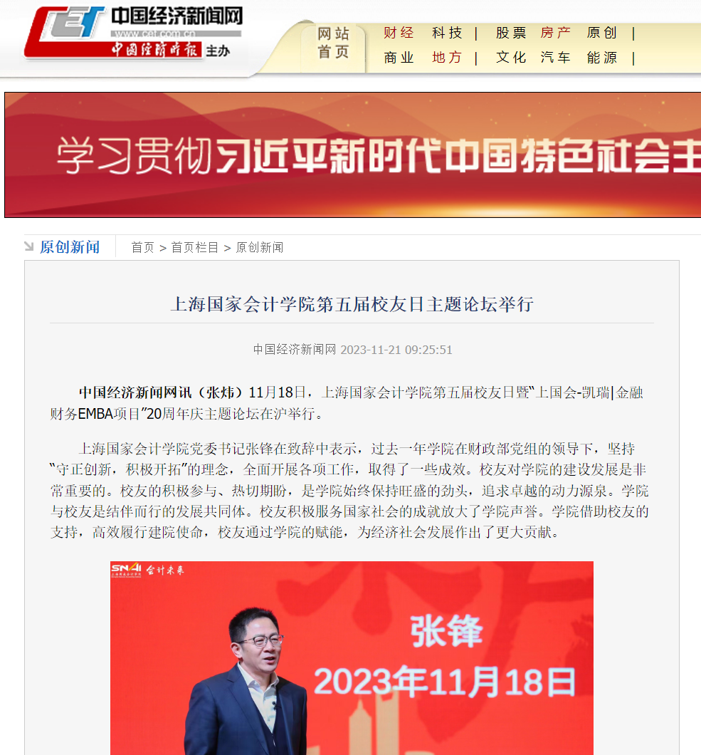 《中国经济时报》:上海国家会计学院第五届校友日主题论坛举行【2023年11月21日】