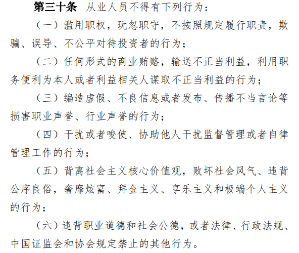 中基协称,本次修订全面加强金融监管,进一步规范基金从业人员执业行为,提高基金从业人员特别是基金经理、投资经理等投资管理人员的合规意识和职业操守。