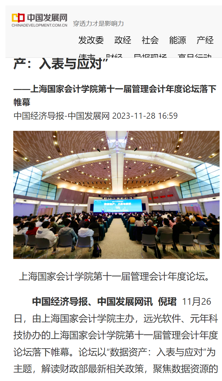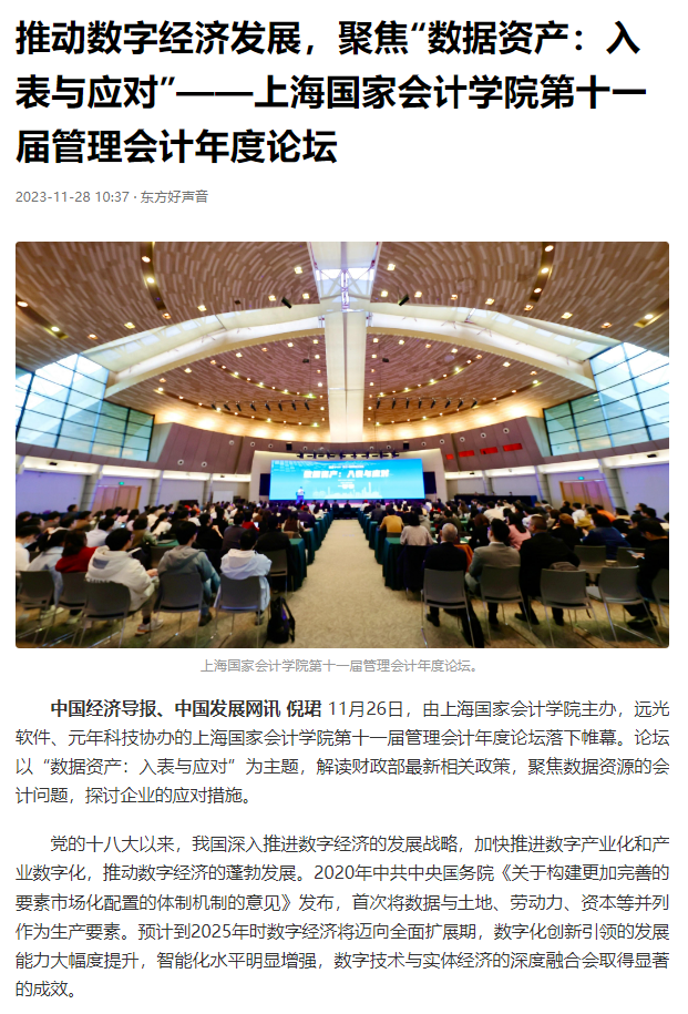 《中国经济导报》中国发展网:推动数字经济发展,聚焦“数据资产:入表与应对”——上海国家会计学院第十一届管理会计年度论坛【2023年11月28日】