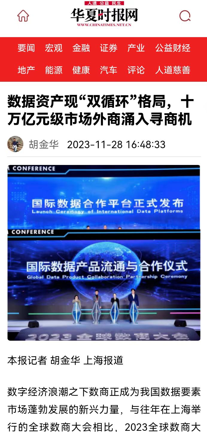 《华夏时报》:数据资产现“双循环”格局,十万亿元级市场外商涌入寻商机【2023年11月28日】