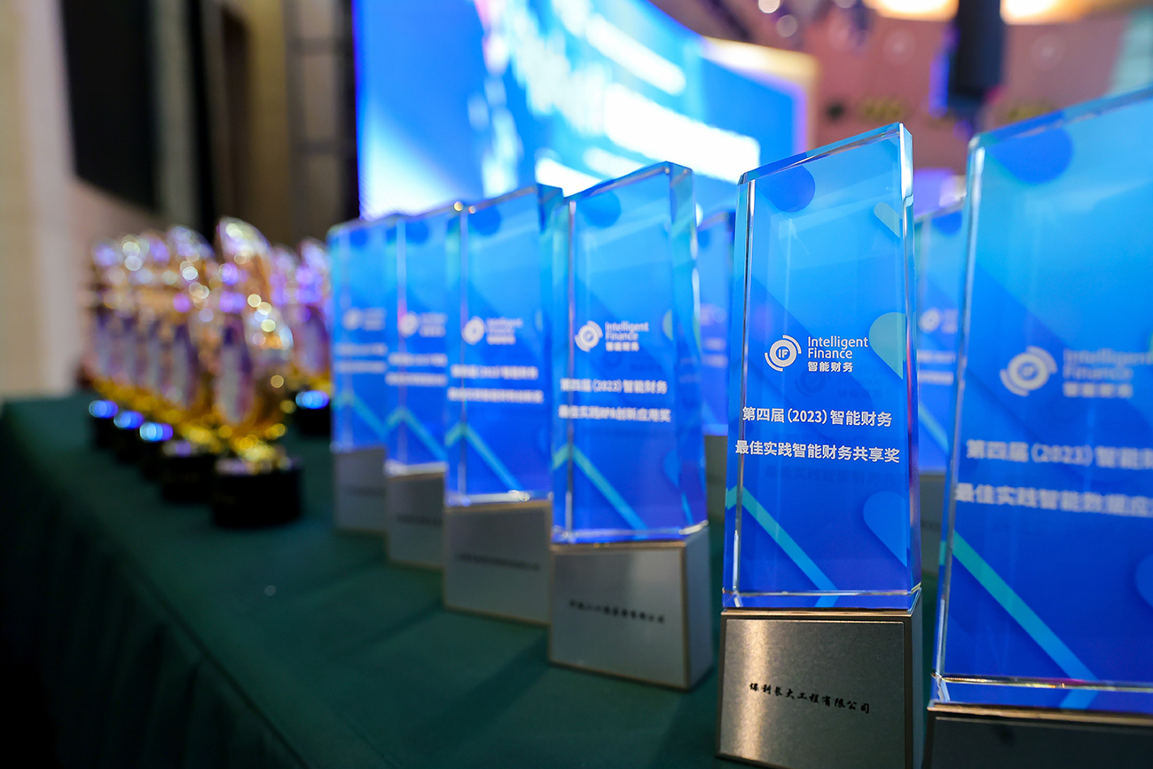 智能财务最佳实践智能数据应用奖获奖单位分别为:深圳市环境水务集团有限公司、国投生物科技投资有限公司、国网浙江省电力有限公司、旭辉集团股份有限公司、中建八局科技建设有限公司。