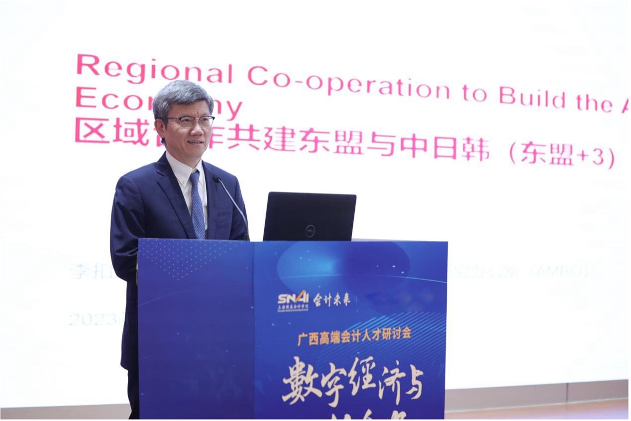 广西壮族自治区财政厅党组成员、副厅长陈海涛表示,本次研讨会是一次促进交流、深化合作的盛会,对加强广西高端会计人才对于数字经济的理解、掌握、运用、拓展具有重要意义和作用。党的十八大以来,广西面向东盟的数字经济活动日益活跃,数字经济已成为广西与东盟合作的重要支撑。数字经济的发展离不开高端会计人才的基础支撑和智力支持,同时也为会计人才队伍的高质量发展和高端会计人才发挥自身优势和作用提供了新的重要机遇。本次研讨会是上海国家会计学院与广西壮族自治区财政厅深度合作的重要契机,自治区财政厅将依托专业优势,帮助更多广西高端会计人才主动顺应经济发展要求,进一步加强广西对外会计的交流合作,促进广西会计工作高质量发展,努力培养更多高端会计人才。