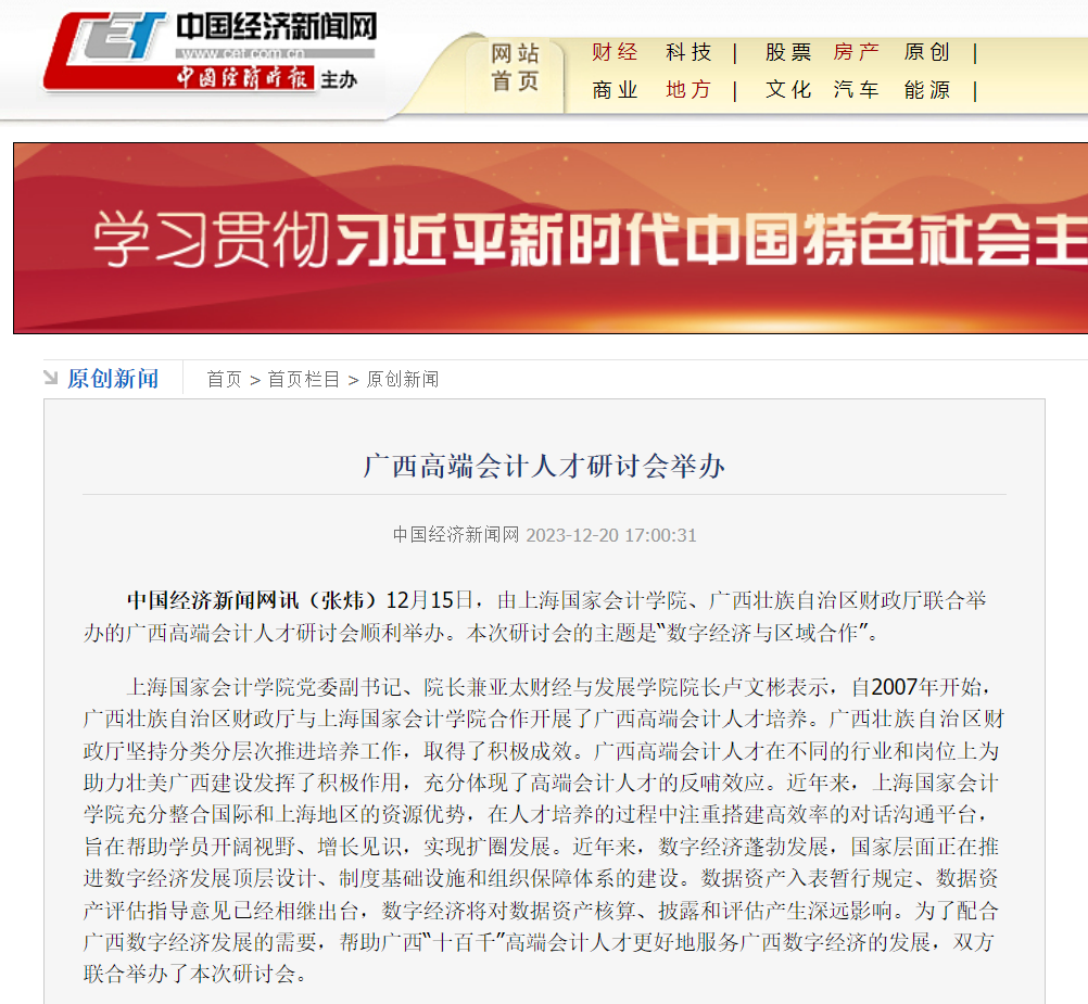 中国经济新闻:广西高端会计人才研讨会举办【2023年12月20日】
