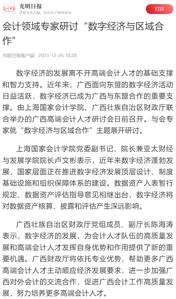 《光明日报》:会计领域专家研讨“数字经济与区域合作”【2023年12月26日】