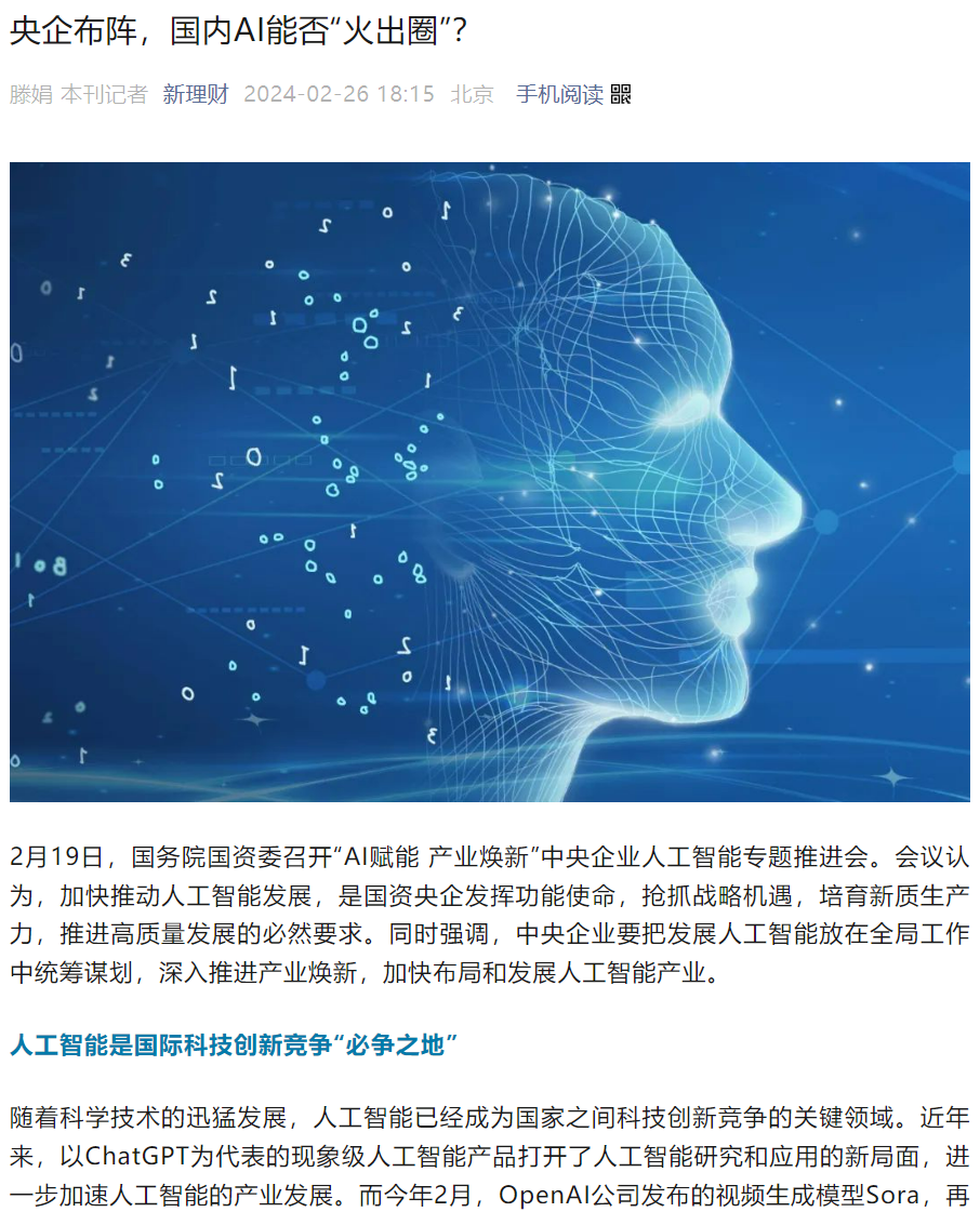 此外,央企能够集聚顶尖人才,为人工智能的研究与开发提供丰富的智力资源和创新动力。