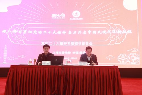为深入学习贯彻党的二十大精神,12月8日,学院举行党的二十大精神专题辅导报告会,特邀中共上海市委党校经济学教研部副主任李猛教授作《深入学习贯彻二十大精神 奋力开启中国式现代化新征程》专题辅导报告。财政部上海监管局、财政部广西监管局、国家会展中心(上海)、以及学院四家单位以线上线下相结合的方式开展了联组学习。报告会由学院党委书记张锋同志主持,学院党委班子成员及全体党员干部在学院国际会议中心聆听了报告。