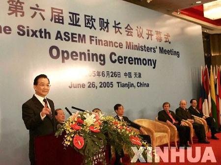 CCTV.com消息(新闻联播):第六届亚欧财长会议今天上午在天津召开。国务院总理温家宝出席开幕式并发表了题为《加强亚欧财金合作 促进各国共同发展》的讲话。