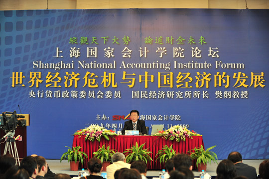 4月11日,国际会议中心,在经久不息的掌声中,我院2009年第一届论坛“世界经济危机与中国经济的发展”落下帷幕。近千名校友及各界友人从全国各地汇聚一堂,来聆听著名经济学家樊纲的精彩演讲。