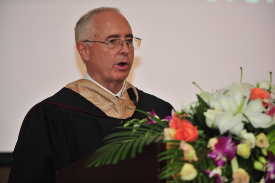 亚利桑那州立大学1982届毕业生、美国第一太阳能董事长迈克尔·阿赫恩先生为毕业生奉上了真诚的祝贺和祝福,希望各位校友发扬两校的优良传统,为母校争光,不断取得进步。