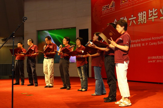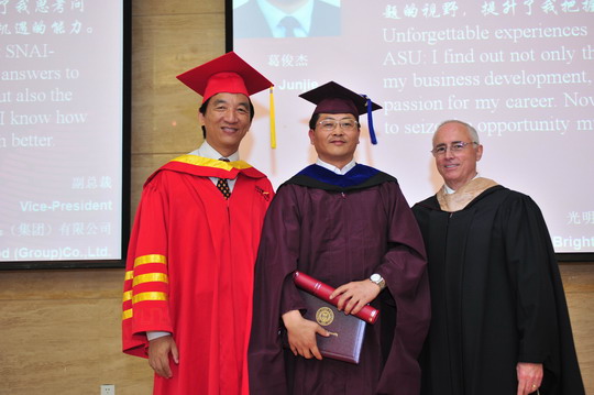 夏大慰院长和亚利桑那州立大学凯瑞商学院闵德思院长分别代表两校对毕业生表示祝贺,希望学有所成的毕业生在当前复杂的经济环境中能够承担更多的责任,为中国经济发展而努力。
