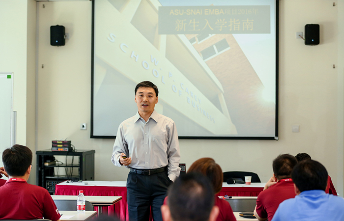 美国亚利桑那州立大学凯瑞商学院副院长沈伟教授则谆谆教诲,每一位坐在这里的同学都已经是很有能力和成就的,但是“三人行,必有我师”,不仅要向教授学习,更要彼此学习,相互分享,才能使自己和自己的企业有所提升。他希望大家从今天的相遇和相识,到毕业时能够成为相知和相爱的校友!