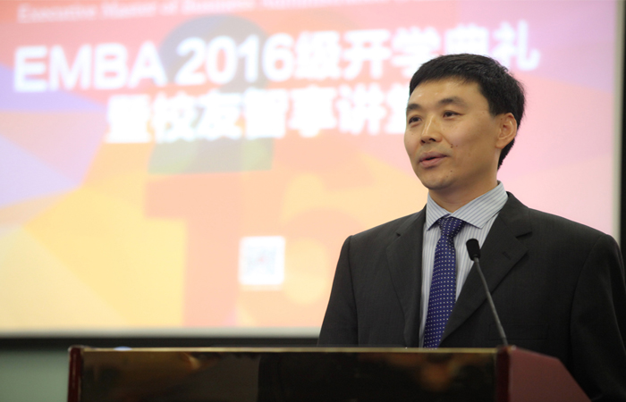 为欢迎EMBA十四期新生入学,EMBA金融二期平安养老保险股份有限公司董事长杜永茂、金融三期申万宏源总裁助理研究所所长陈晓升两位杰出校友欣然应邀,在开学典礼上分别就中国的养老问题和经济形势作了分析和分享。