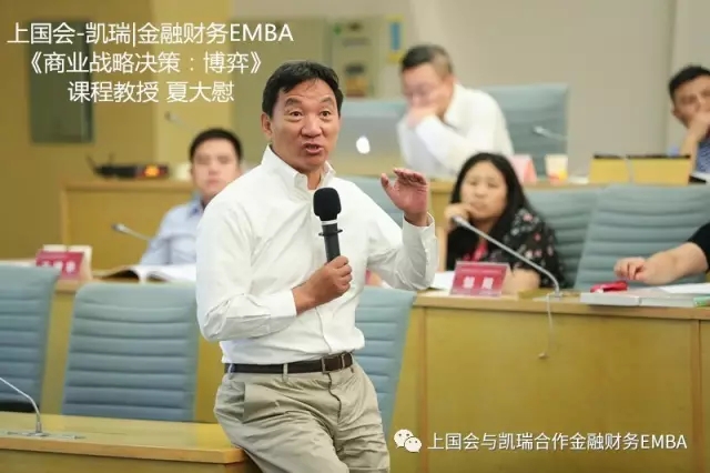 8月12日、13日 、18日和19日,在EMBA的课堂上,上海国家会计学院创院院长、中国工业经济学会副会长、财政部会计准则委员会咨询专家、香港中文大学名誉教授、复旦大学管理学院兼职教授、上海证券交易所上市公司专家委员会委员夏大慰教授带领着学员们一窥“博弈论”的门径。