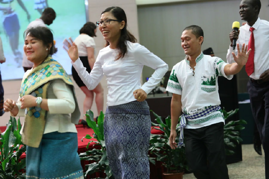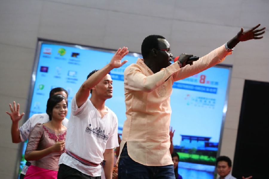 17级留学生合唱《非洲民谣》,带来非洲风情和非洲人民的祝福,带领全场一起舞动。